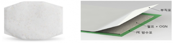 본 기술은 강력한 항균 기능이 있는 고체산소를 마스크 부착형 패드로 제작해 기존 KF80과 K94 마스크에 활용할 수 있다.
