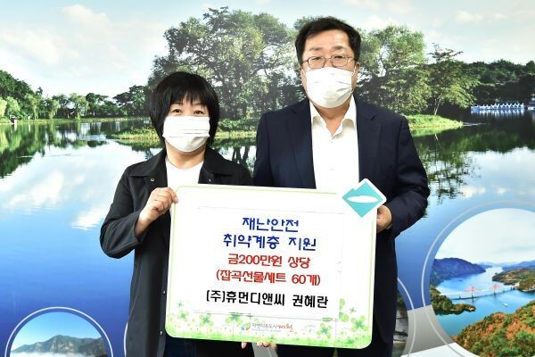 [무한뉴스] 제천시 주식회사 휴먼디앤씨는 집중호우로 피해를 입은 제천지역 수해피해주민들을 위한 재난안전 취약계층 지원물품을 지난 28일 제천시에 기탁했다.