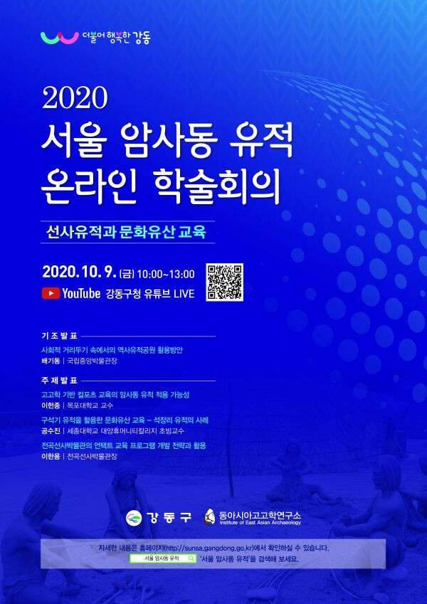강동구는 서울 암사동 유적의 학술적 가치를 재조명하고 위상을 높이기 위해 2016년부터 매년 학술회의를 개최하고 있으며 올해는 신종 코로나바이러스 감염증 확산 방지를 위해 비대면으로 진행된다.
