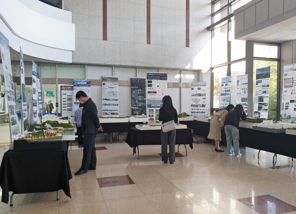 오는 9일까지 충주시청 1층 로비에서 진행되는 지역개발디자인 제안전에는 소리의 섬 ‘비내섬’ 프로젝트를 비롯한 14개 작품이 전시된다.
