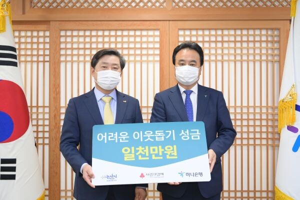 황명선 논산시장은 “동고동락은 기쁨과 슬픔을 함께하며 어려움을 이겨내는 공동체 정신”이라며 “나보다 나의 이웃을 위해 아낌없는 나눔을 실천해주신 하나은행 관계자 여러분께 진심으로 감사드린다”고 말했다.