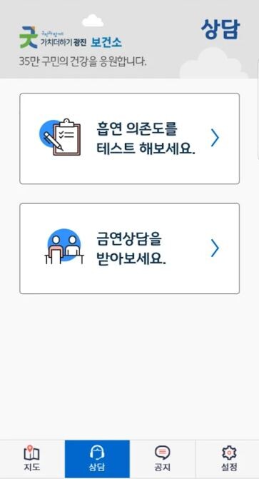 이와 함께 구는 이용자의 편의를 제공하고자 소통 게시판 금연클리닉 비대면 상담 등록 기능도 함께 운영하고 있다.