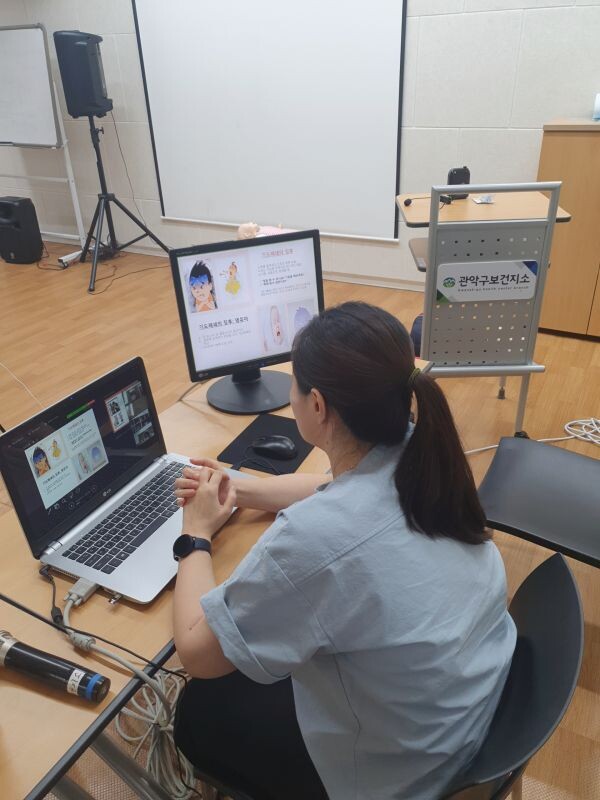 특히 교육에 필요한 실습용 심폐소생술 인형 및 자동심장충격기를 해당 어린이집에 미리 배부하고 스마트폰 앱을 통해 실시간 가슴압박속도를 측정 및 교정하는 등 대면 교육과 동일한 실습을 진행함으로써 교육 대상자들의 만족도를 높일 수 있을 것으로 기대된다.
