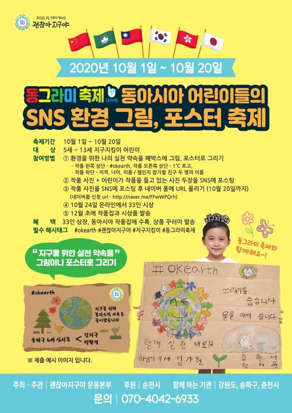 공모전을 주관하는 ‘괜찮아 지구야 운동본부’는 심사 기준에 따라 국가별 33명씩, 모두 198명의 작품을 선정하고 10월 24일 SNS를 통해 발표한다.
