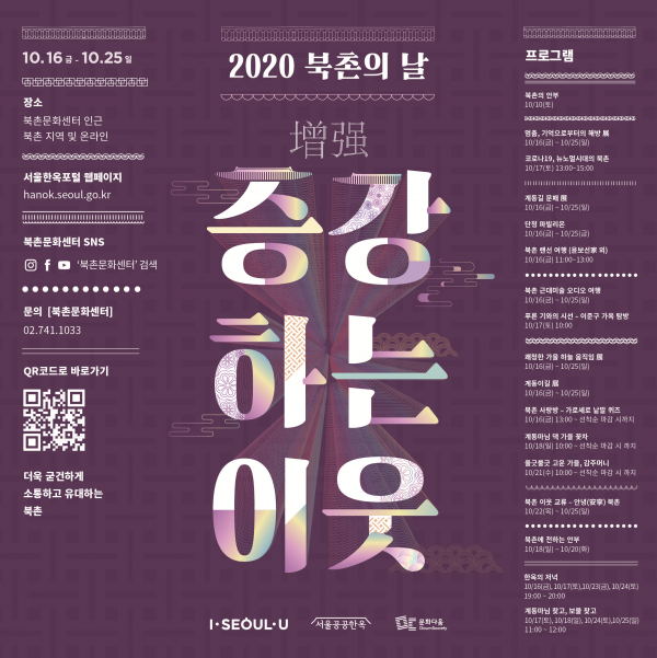 주민/북촌 지역 전문가/작가와 함께 코로나19 이후 달라진 북촌의 현재를 살펴보고 앞으로의 북촌을 고민해보는 포럼과 전시가 온라인으로 운영된다.