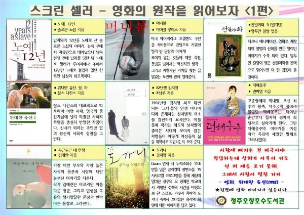 청주오창호수도서관,‘스크린셀러-영화의 원작 읽기’운영