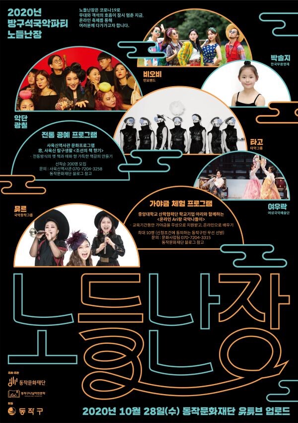6개 팀의 공연영상은 28일 동작문화재단 유튜브에 업로드되어 누구나 관람할 수 있다.