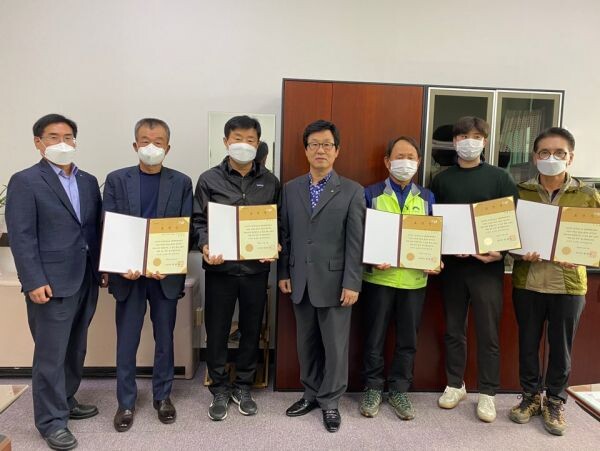 이날 표창장을 수상한 5명은 산림관리과 소속 기간제근로자들로 올 여름 긴 장마와 집중호우·태풍 기간 동안 산사태 위험지, 토사 유출지, 위험수목 도복현장 등 재해현장에서 응급조치, 복구작업에 혼신을 다했다.