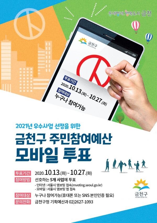 이번 모바일투표는 금천구민, 금천구 소재 직장인과 학생이면 누구나 참여할 수 있다.