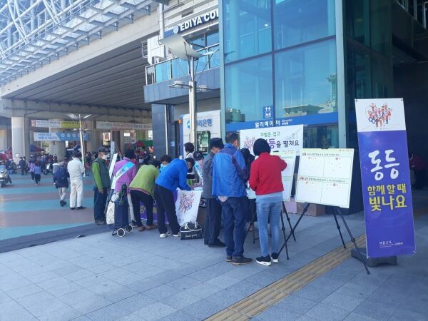 지난 9일 온양온천역 광장에서 펼쳐진 이번 캠페인은 ‘동등, 함께 할 때 빛나요’라는 슬로건 아래 평등한 가족관계를 형성하고 남녀의 차이를 이해해 양성평등 문화 확산과 인식개선을 위해 많은 시민들을 직접 찾아가는 방식으로 열렸다.