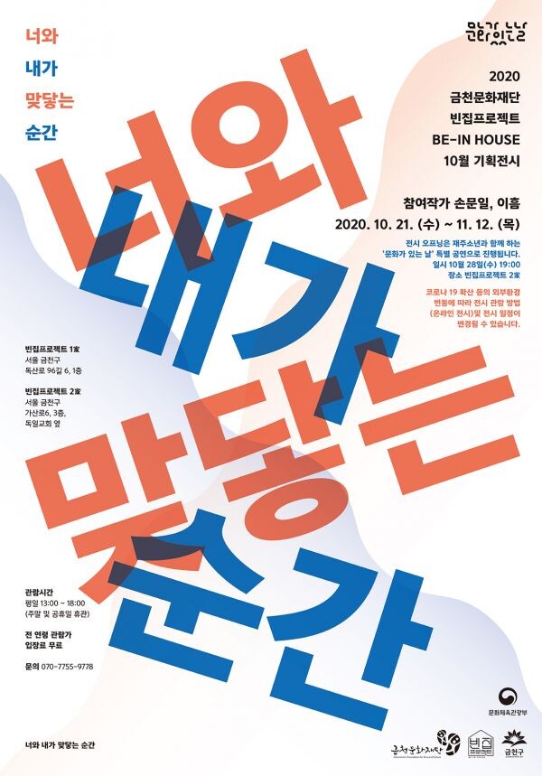 먼저 10월 21일부터 11월 12일까지 독산동 빈집 1家, 2家에서 기획전시 ‘너와 내가 맞닿는 순간’을 진행한다.