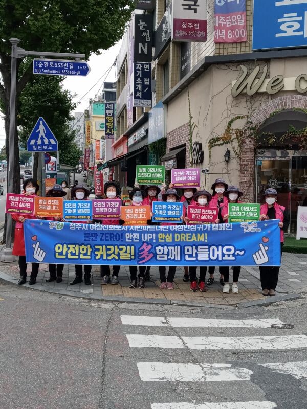 오선숙 여성친화도시 시민파트너단장은 “밤길에도 안전하게 귀가할 수 있는 안심귀갓길을 조성하는데 지자체에서 더욱 노력해 줬으면 한다”며“시민파트너단은 앞으로도 여성이 안전한 여성친화도시 청주를 조성하기 위해 지속적인 캠페인을 실시할 예정이다”고 말했다.