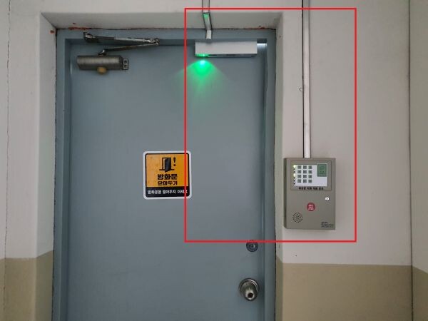 옥상 출입문은 비상시 긴급 대피 공간으로 개방해 두기를 권고하지만 평상시 방범목적 및 안전사고 예방을 위해 닫혀있는 경우가 많은 것이 현실이다.
