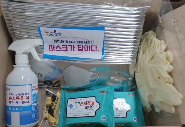 먼저 구는 오는 23일까지 강남시장 남성사계시장 본동인정시장 성대전통시장 흑석골목시장 신대방1동 골목상권 등 전통시장 및 상점가에 ‘상인용 코로나19 방역키트’를 배부한다.