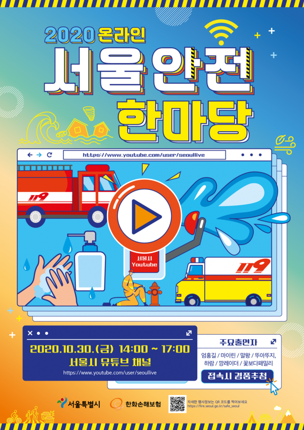 [무한뉴스] 서울시 소방재난본부는 ‘코로나19 시대에도 안전에는 거리두지 마세요’라는 슬로건 아래 10월 30일 오후 2시부터 ‘2020년 온라인 서울안전한마당’으로 시민들을 찾아간다.