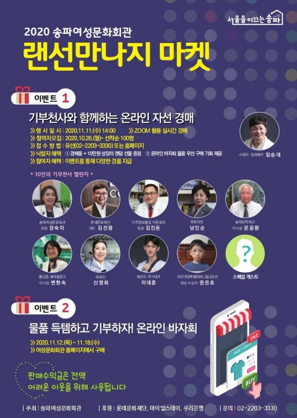 이번 온라인 경매 및 바자회는 ‘랜선만나지 마켓’으로 송파여성문화회관과 함께 한다.