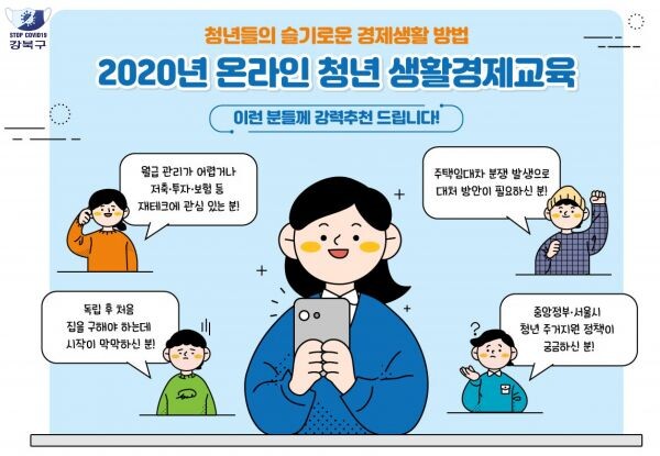 박겸수 강북구청장은 “생활경제교육 참가자들은 올바른 경제관을 확립하고 청년 맞춤 주거지원 정책을 이해하는데 도움을 받을 수 있다”며 “재무, 주거뿐 아니라 교육, 문화 등 다양한 영역에서 청년 맞춤형 정책을 꾸준히 발굴해 나가겠다”고 말했다.