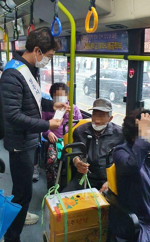 최근 ‘감염병의 예방 및 관리에 관한 법률’이 개정됨에 따라 시는 19일부터 주 2회씩 대중교통과 직원 2명이 2개조로 청주시에서 운행 중인 시내버스를 무작위로 선정해 마스크를 미착용한 시내버스 이용자에게 마스크 착용 요청 불응 시 10만원의 과태료를 부과한다.