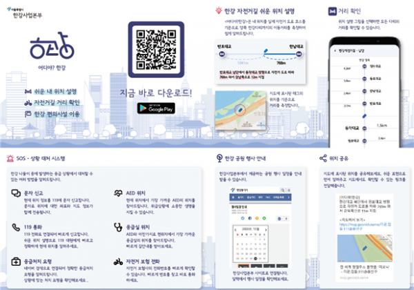 전영주 한강사업본부 시설부장은 “응급상황 시 클릭 한 번으로 시민 여러분 안전을 확보할 수 있는 만큼 많은 관심과 활용을 바란다”며 “앞으로도 지속적인 시민 의견 청취로 보다 편리하고 안전한 한강공원을 만들어 나가겠다”고 말했다.