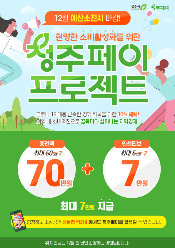 특히 충북도에서 배달수수료 부담 완화를 위해 만든 충북형 배달앱인 ‘먹깨비’어플리케이션에서도 이달 27일부터는 청주페이로 결제 연동이 가능해져 결제수단 선택 시 청주페이를 선택해 결제하는 것도 가능해진다.