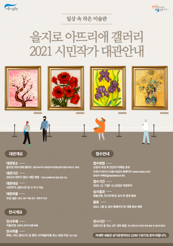 아뜨리애 갤러리는 회화·사진·일러스트 등 평면 시각예술작품 30점 이상을 전시할 수 있다.