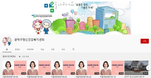 이에 구는 관악구 정신건강복지센터 유튜브 채널을 통해 비대면 강좌를 실시, 시간과 장소에 구애받지 않고 누구나 시청할 수 있도록 지원하고 있다.