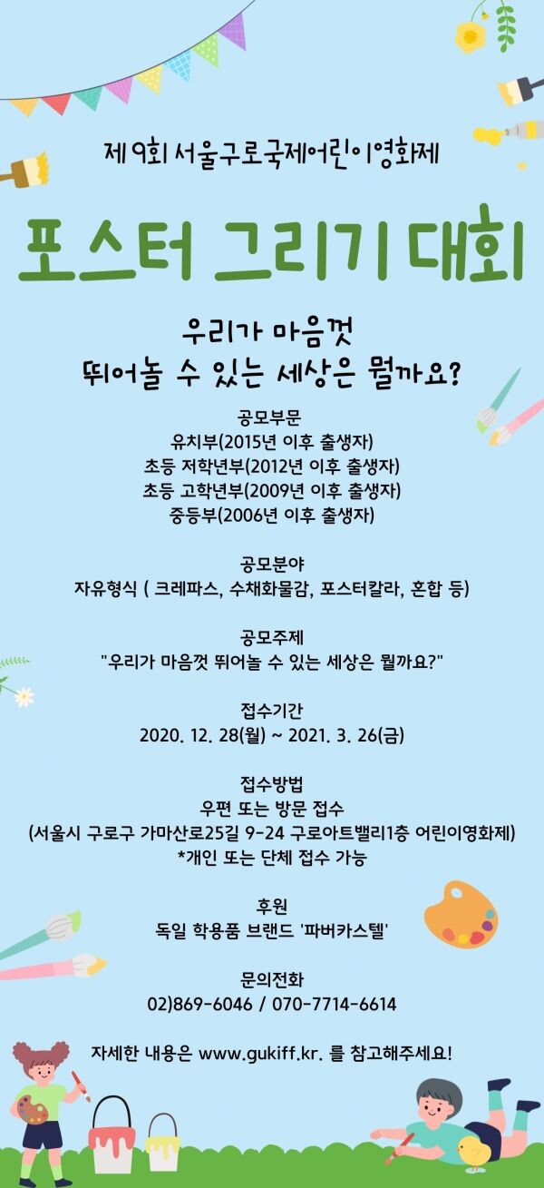 서울구로국제어린이영화제는 유치부, 초등부 저·고학년, 중등부 부문으로 나눠 대상, 파버카스텔상, 우수상 등 총 48명의 입상자를 선발한다.
