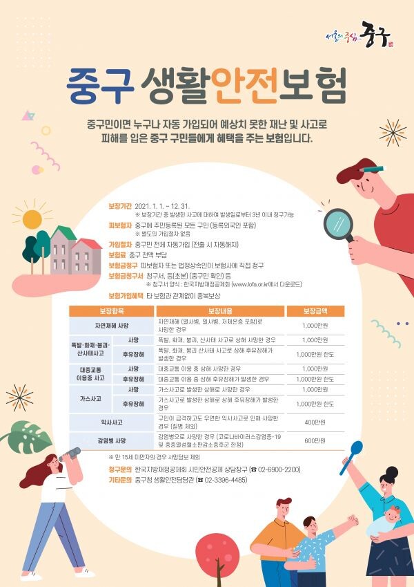 중구는 전 구민을 대상으로 '중구 생활안전보험'을 도입했다고 19일 밝혔다.