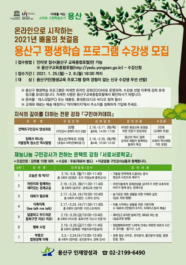 교육 신청, 강의 수강 방법 등 상세 내용은 용산구교육종합포털을 통해 확인 가능하다.