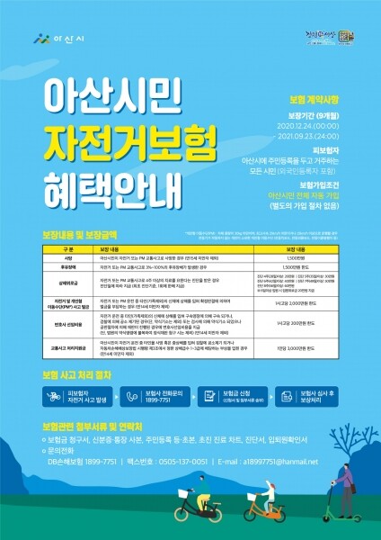 2011년 처음 가입한 자전거 보험은 아산시에 주민등록이 되어 있는 시민이면 누구나 별도의 가입 절차 없이 가입되며 외국인 등록자도 포함된다.