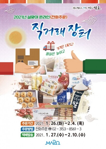 한편 구는 지난해 코로나19로 인해 오프라인 장터 개설이 어려운 상황에서도 농·특산물 소비가 많아지는 명절에는 온라인 직거래 장터를, 김장철에는 새우젓 장터를 비대면 방식으로 운영해 주민들에게 복잡한 유통과정 없이 편리하게 산지 상품을 구매할 수 있도록 했다.
