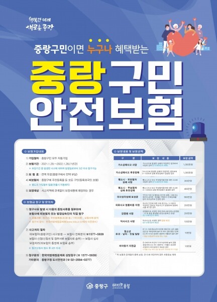 별도 가입 없이 중랑구에 주민등록상 주소만 두면 무료로 가입되며 보장기간은 이달 29일부터 1년간이다.