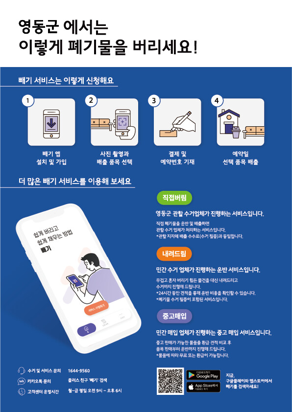 그동안 군민들은 일생생활에서 나온 가구 등의 대형 폐기물을 버리기를 버리기 위해서는 거주지 읍·면사무소를 직접 방문, 대형폐기물 스티커를 구매해 폐기물에 부착 후 처리업체에 연락해야 하는 번거로움이 있었다.