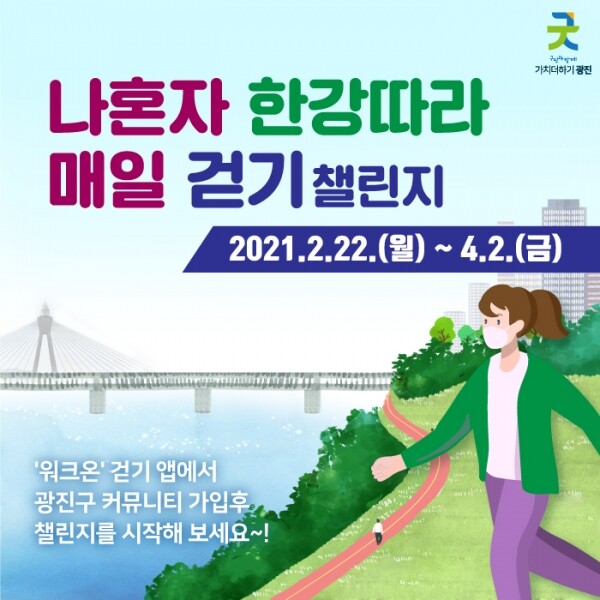 참여를 원하는 구민은 스마트폰 걷기 앱 ‘워크온’에서 광진구 걷기 커뮤니티에 가입한 후 챌린지에 참여해 제공되는 코스를 완주하면 된다.