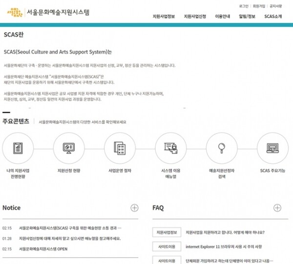 매년 130여억원 규모로 추진해온 서울시의 모든 예술지원사업을 한 눈에 보고 신청부터 보조금 교부 이후까지 원스톱으로 처리할 수 있다.