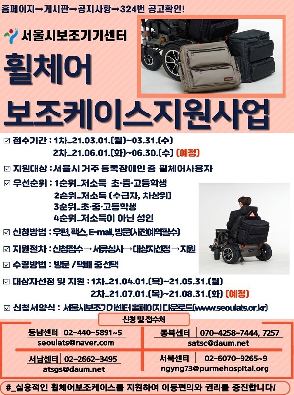 지원신청은 서울시 4개 권역별 보조기기센터에서 2회로 나눠서 접수받는다.