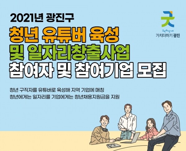 신청자격은 유튜브를 활용할 수 있는 홍보·마케팅 직무를 둔 광진구 소재 중소기업 또는 사회적경제기업으로 청년 근무자의 인건비 월 20만원과 4대 보험료를 부담해야 한다.