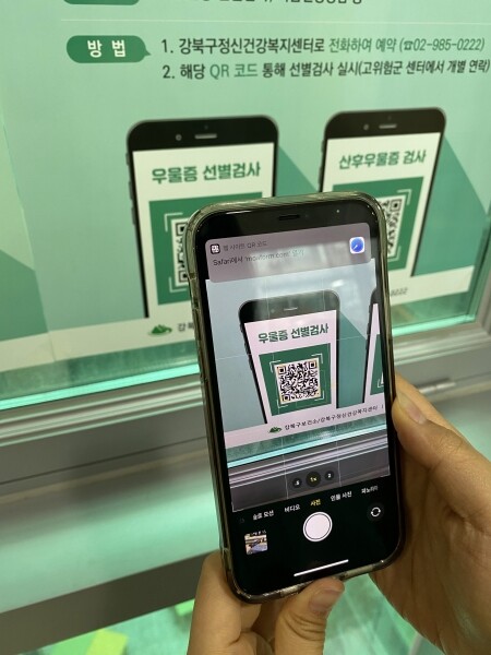주민 누구나 스마트폰으로 정보무늬를 찍으면 마음건강 검사를 받을 수 있다.