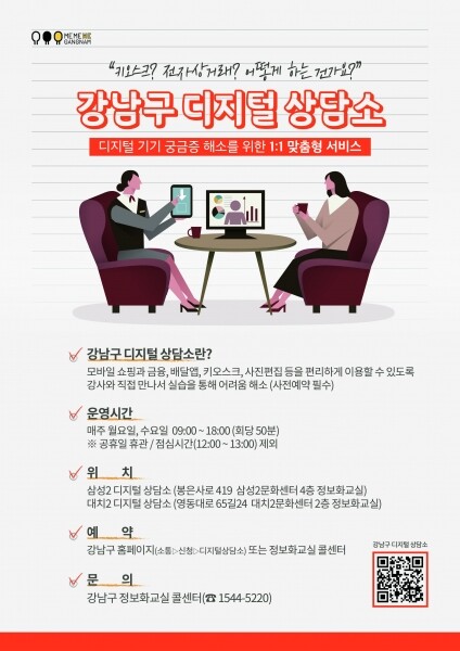상담은 사전 예약제로 삼성2동 주민센터와 대치2동 주민센터 정보화교실에서 매주 월·수 오전 9시~오후 6시 진행된다.
