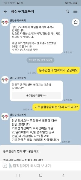 먼저 구는 구민과의 소통 창구로 ‘광진구기초복지’ 카카오톡 채널을 개설하고 운영에 들어갔다.