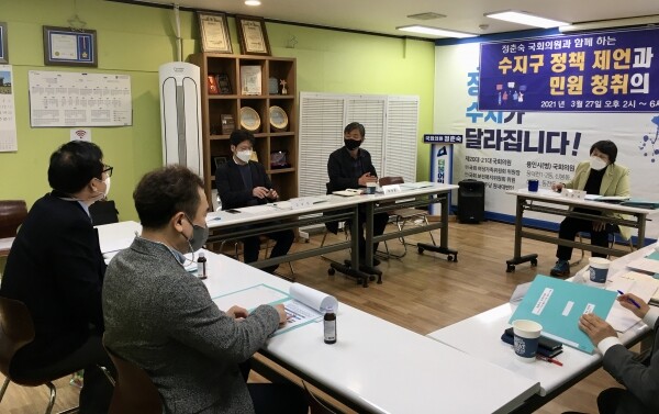 정춘숙 의원을 비롯한 윤원균 용인시의원, 장정순 용인시의원, 수지구청 산업환경과 이택호 과장은 주민 의견을 듣고 함께 해결방안을 모색했다.