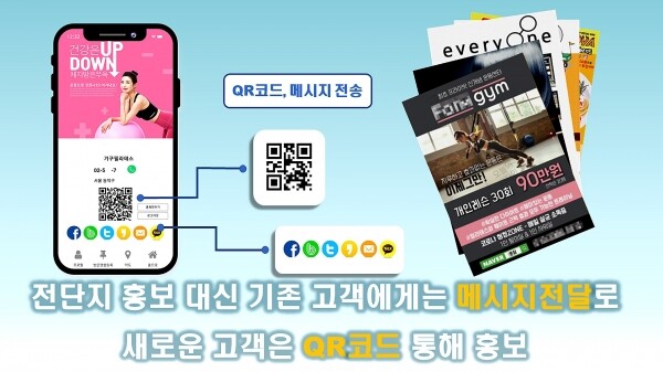 모바일 명함은 QR 코드가 생성되어 SNS채널로 연동 해 점포 및 상품소개, 주문, 예약, 이벤트 등 다양한 컨텐츠를 담아 실시간으로 고객에게 상점 정보를 알릴 수 있다.