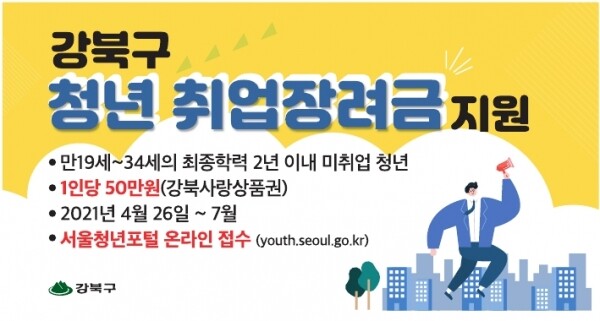 대상은 공고일 이전부터 강북구에 주소를 둔 만 19세에서 34세 청년이며 2년 이내 최종학교를 졸업해야 한다.