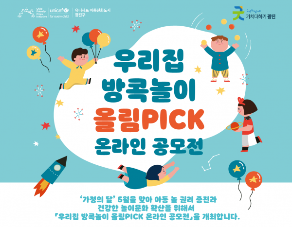 김선갑 광진구청장은 “아동이 건강하고 행복하게 성장하기 위해서는 ‘놀 권리’ 또한 보장되어야 하며 이번 공모전을 통해 ‘놀 권리’에 대한 인식이 확산되기를 기대한다”며 “코로나19로 집에서 머무는 시간이 길어진 아동·청소년들이 자신만의 재미있고 특별한 놀이활동을 친구들에게 많이 공유해주길 바란다”고 말했다.