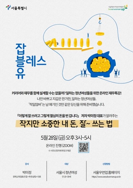 이와 관련해 서울시여성능력개발원은 온라인 재무특강 ‘잡블레스유’에 참여할 200명을 선착순 모집한다.