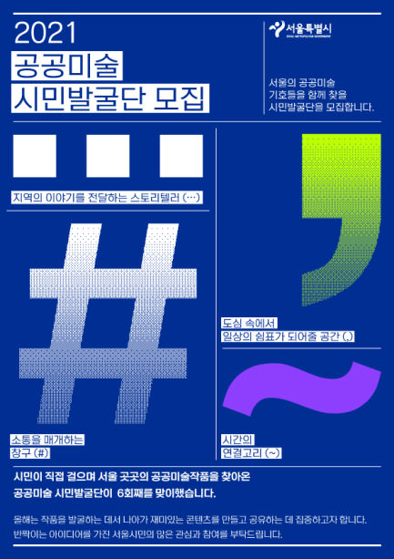 ‘2021 공공미술 시민발굴단’은 ‘서울은 미술관’ 사업을 통해 탄생한 녹사평역·노들섬 등과 최근에 설치된 공공미술 공간을 중심으로 조별 기호를 설정해 활동을 진행한다.