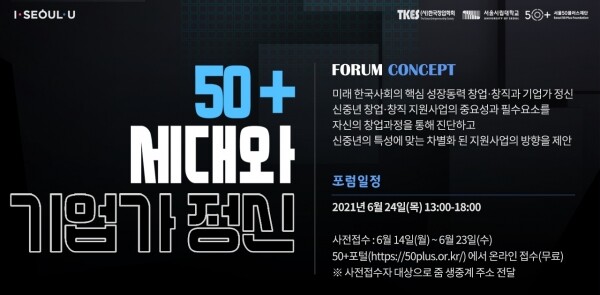 포럼은 24일 오후 1시부터 6시까지 줌 플랫폼을 통해 생방송으로 진행 될 예정이며 참여를 원하는 사람은 14일부터 23일까지 50+포털에서 사전 신청할 수 있다.