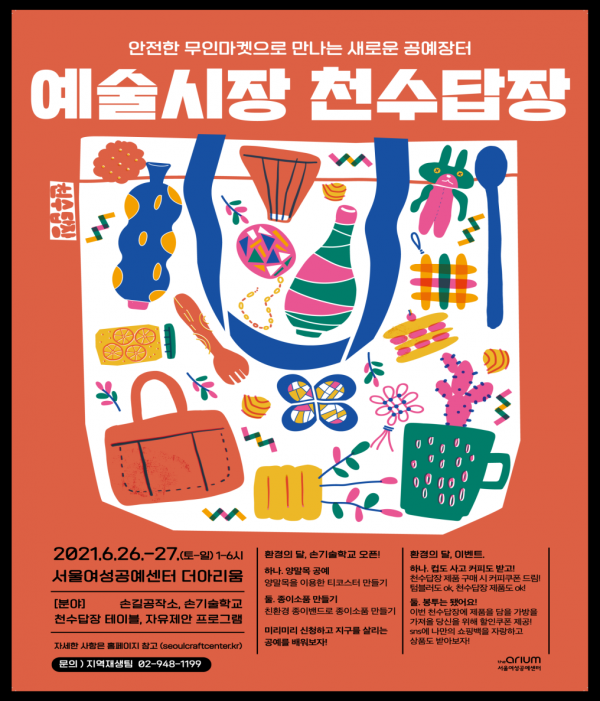서울여성공예센터는 6월 26일~27일 양일간 서울여성공예센터 더아리움 1층 공예마당에서 무인 공예장터 ‘예술시장 천수답장’을 개장한다.