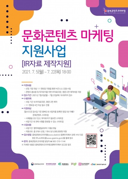 참여를 원하는 기업은 오는 22일 오후 6시까지 충북콘텐츠코리아랩 홈페이지에서 관련 서식을 내려 받아 작성한 뒤 e나라도움을 통해 접수하면 된다.