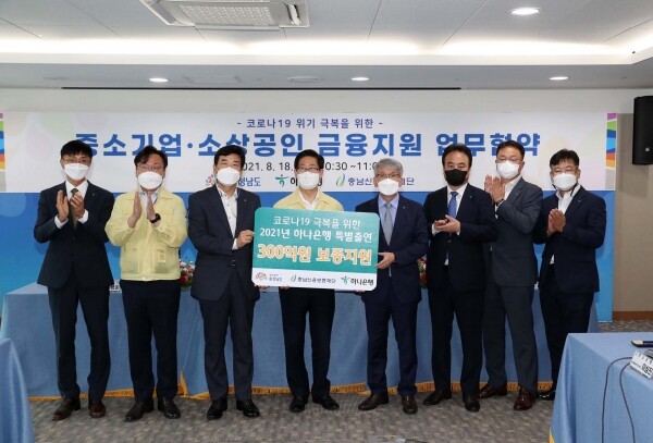 지원 대상은 하나은행과 충남신보가 추천하는 도내 또는 도가 승인한 업무구역 소재의 중소기업·소상공인이다.